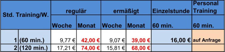 Kursbeitrag über 120€ ist zur ersten Stunde in bar zu entrichten.